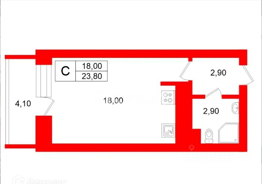 Продается квартира-студия на 2 этаже 4-х этажного дома по адресу д. Кабицыно, мкр Молодежный, д. 10.